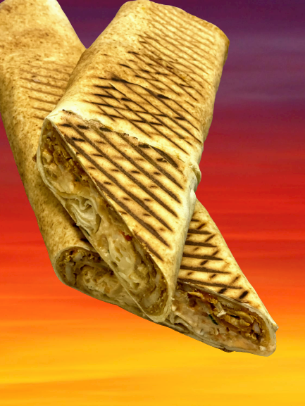 Tortilla z Polędwiczką Beskidzka (polędwiczki, frytki, ser, sos do wyboru)
